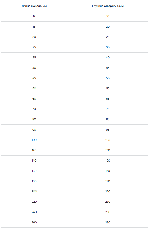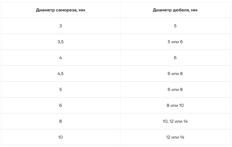 3.2. Подбор дюбеля к саморезу