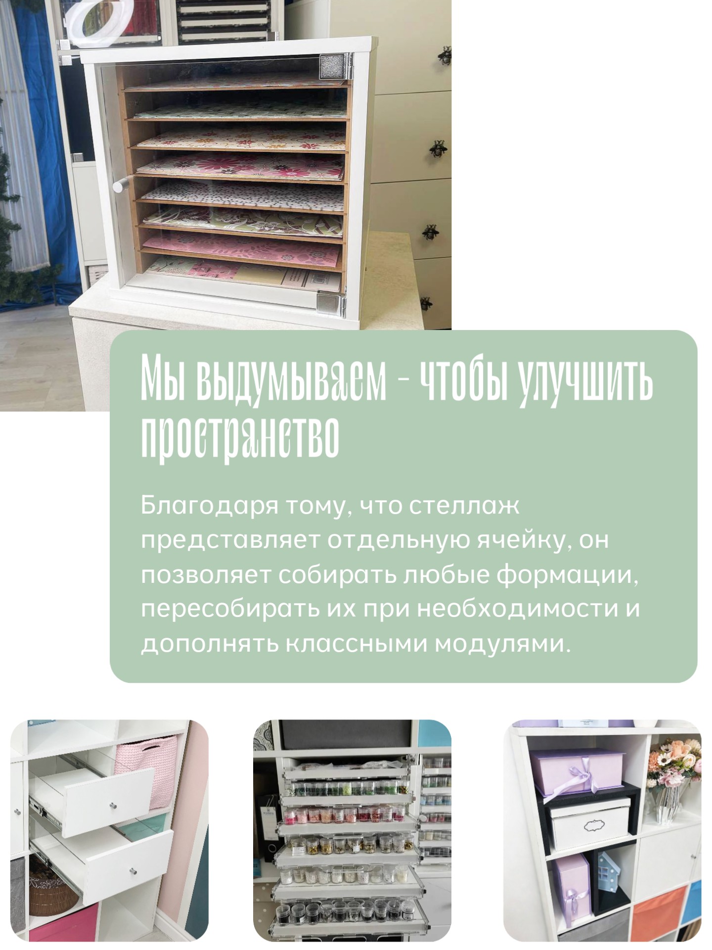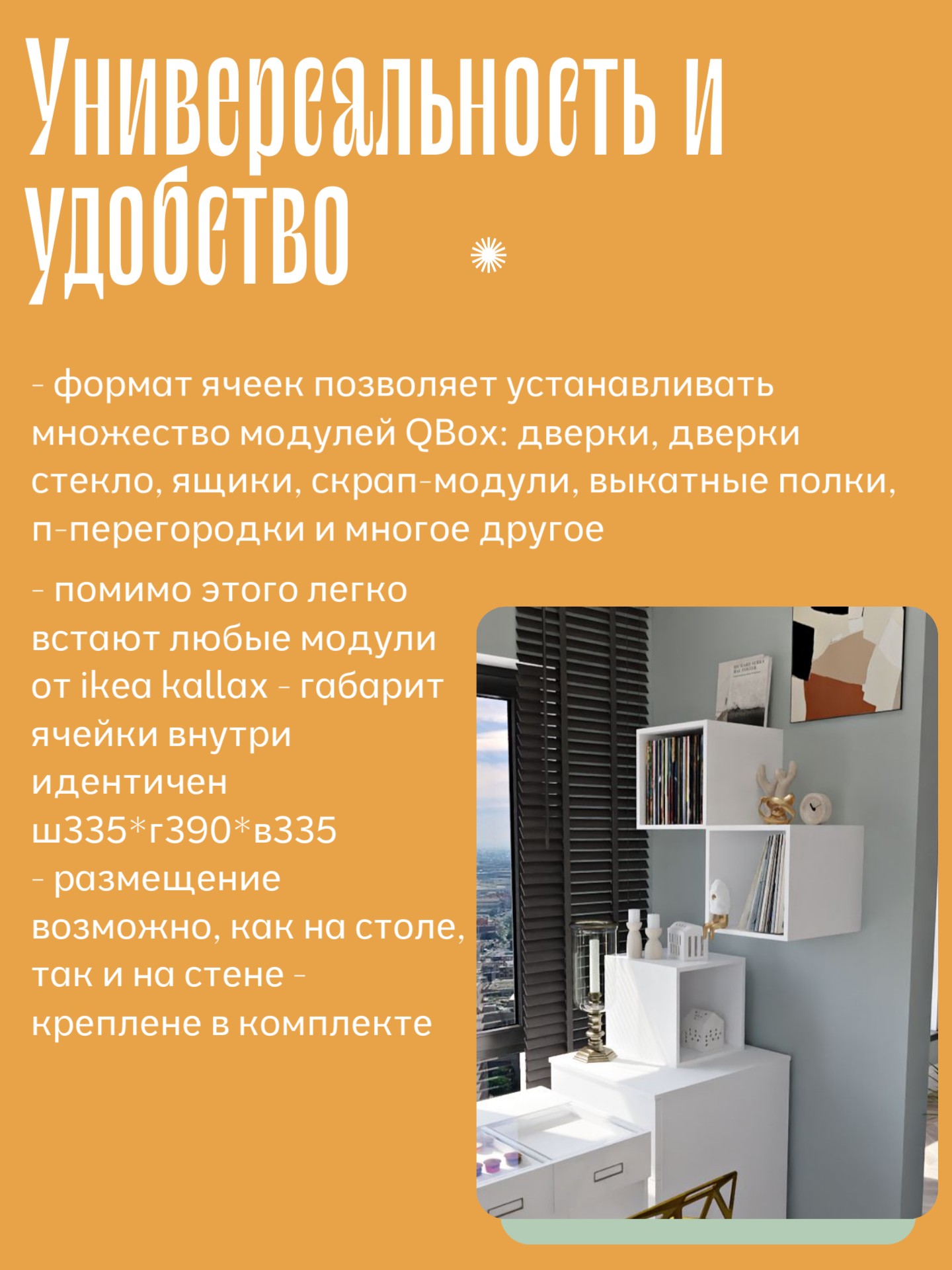 Подробнее про стеллажи и адаптивность к IKEA Kallax и Expedit тут.